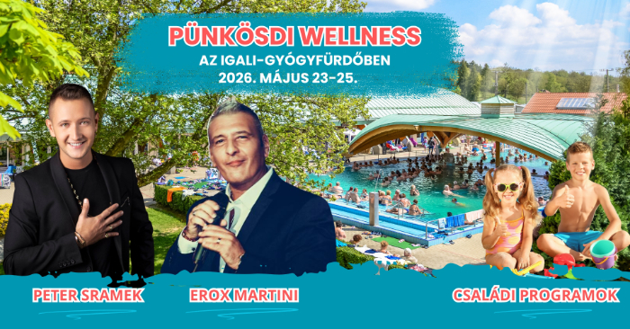 Látogass el pünkösdkor is Igalba és töltsd nálunk az év egyik legkedveltebb hosszú hétvégéjét. A kényeztető fürdőzés mellett gyermekprogramokkal, sztárfellépőkkel, zenés medence partival és a 2026-os év első családi napjával várunk Benneteket, amelyen 10 év alatt ingyenes belépést is biztosítunk. A külső medencék mellett olyan népszerű előadók lépnek fel, mint Peter Sramek és Erox Martini.